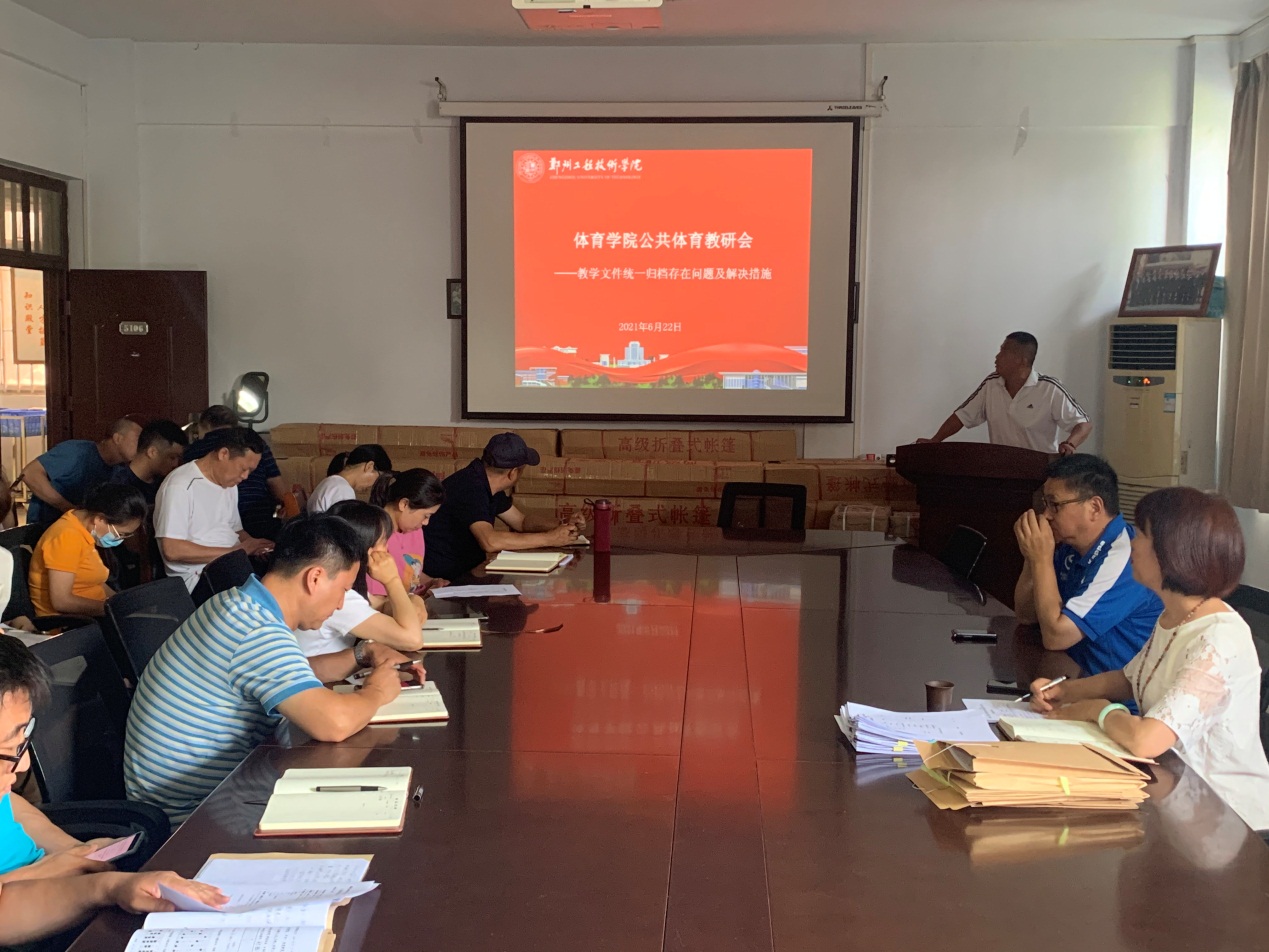 为提高公共体育教学质量,进一步规范公共体育教学文件资料。6月22日上午,beat365平台官方网站组织全院教师、兼职教师及外聘教师,在beat365平台官方网站会议室召开公共体育教研会。beat365平台官方网站副院长胡素霞主持会议。