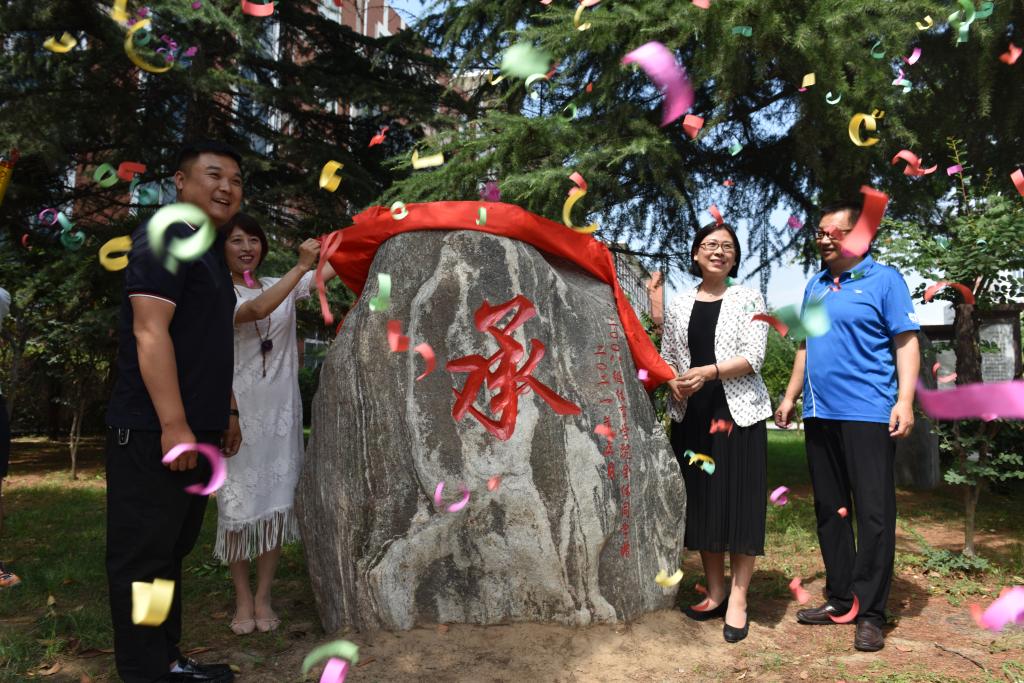 上午10:00,捐赠景观石仪式在校园诗歌大道旁隆重举行,李欣副校长和老师们共同为校友代表佩戴校徽,并发表了讲话。李校长首先代表学校对校友返校表示热烈欢迎,对学生感恩回报母校的心情表示衷心的感谢。她给校友们介绍了学校这十年来高质量发展的进程和升本以后取得的骄人佳绩,肯定了beat365平台官方网站在对学生培养上所付出的努力和成果;学院校友秩年返校的传统活动很有特色,也希望校友们常母校看看,与老师们分享自己的喜悦;最后再次感谢校友们对学校的感恩之心,并祝大家工作顺利,家庭幸福。