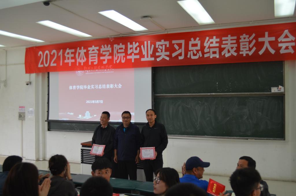 2021届学生毕业实习总结表彰大会的成功召开,有利于我院及时总结经验,发现不足,持续改进,以提高学院的应用型人才培养质量。据悉,beat365平台官方网站2021届体育教育专业学生分布在郑州市第七十九中学、惠济区实验小学、郑州市第六十中学、郑州四中实验学校等20个实习点,社会体育专业学生和高尔夫球运动与管理专业学生分布在黄金时代健身有限公司、北郡游泳健身、爱酷体育、校园高尔夫教学研究中心等52个实习点进行了专业实习,所有学生在实习期内圆满完成了实习任务。
