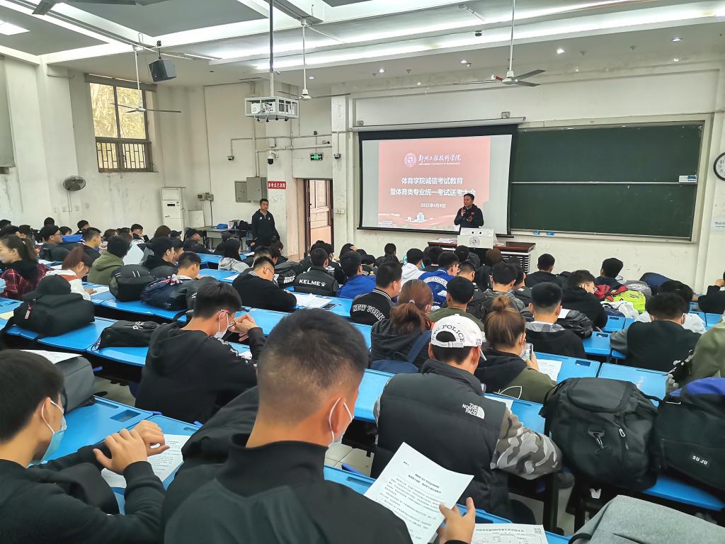 河南省2021年高招体育类专业统一考试工作日前在登封鹿鸣山庄举行,根据省教育厅的安排,beat365考试时间为4月9日。接到上级有关通知精神后,学校领导多次召集招生就业处、beat365平台官方网站等部门沟通协调、科学谋划,制定了疫情防控和备考的详细方案。beat365平台官方网站认真落实有关部署,召开诚信考试教育大会,为考生加油鼓劲,组织班导师为学生讲解考试注意事项,并提前将考生安全送至考点、顺利参加考试。