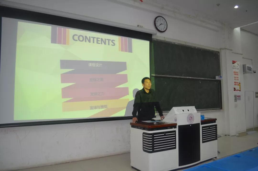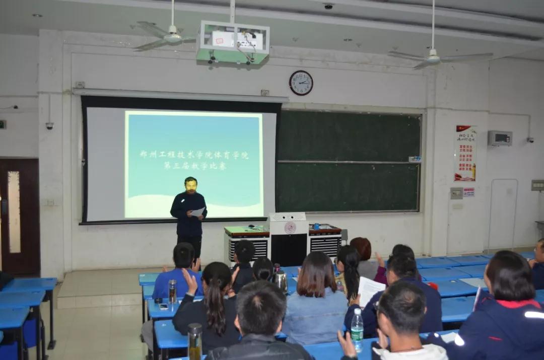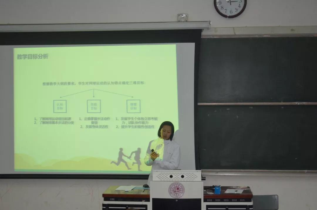 参赛教师在课堂教学环节,从理论课教学到术科课教学,结合室内教学和室外教学,全面覆盖体育课堂教学的内容,以轻松自如的状态和富有感染力的语言,充分利用PPT讲解相结合的形式进行讲课。