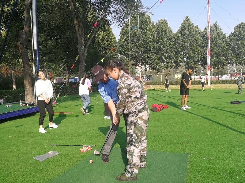 9月25日下午,李院长一行和全体高尔夫球运动与管理专业全体学生来到图书馆后面的民族运动会秋千场地(拟将改建为高尔夫教学场地),进行了以“高尔夫黄金五招”为主要内容的技术讲解。