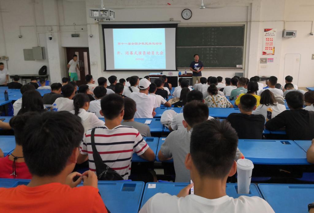 随后,学工办主任李庆功老师主持召开全国第十一届少数民族运动会开、闭幕式演员动员大会。李老师指出:此次演员的选拔,历经三次,精益求精,充分说明了这次工作的重要性。全体演员要有高度的责任感和荣誉感,在训练中要切时守住安全底线,注意个人人身安全和财产安全。训练时服从组织,自觉遵守纪律。提高自身觉悟,把民运会开、闭幕试任务作为一项政治任务完成好。对演员们的饮食、住宿、出行做了统一部署。确定了集合时间和排练时间,强调了演员们的时间观念和集体意识,全力以赴完成此项任务,不辱使命,为校争光。