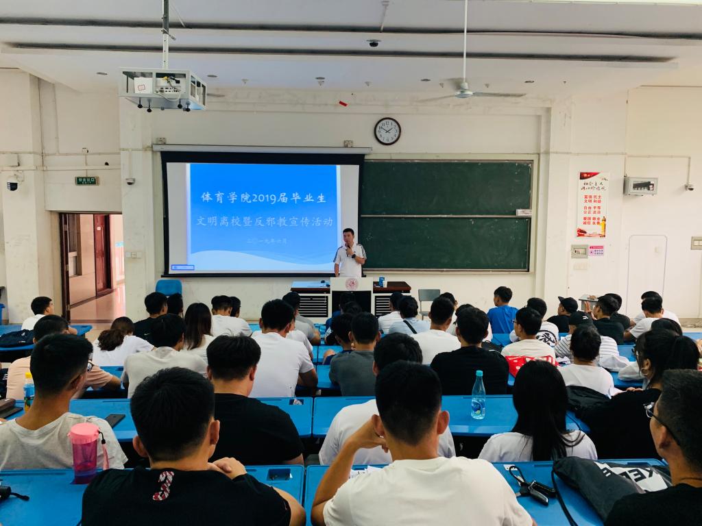 为倡导2019届毕业生文明离校、进一步加强2019年应届毕业生反邪教警示力度,增强应届毕业生对邪教组织的鉴别力和防范能力,beat365平台官方网站于6月12日下午在五阶一召开宣传教育活动大会。