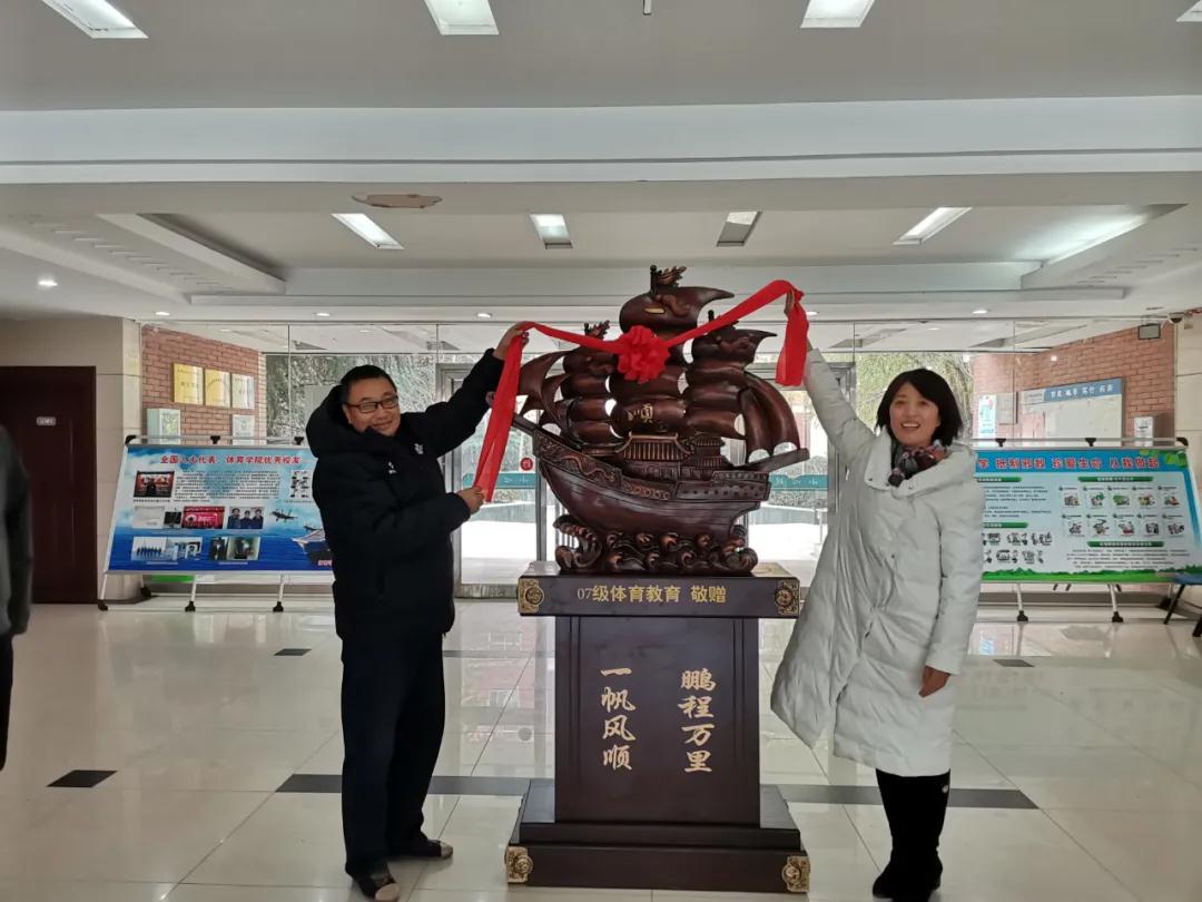 11月28日,2007级体育教育专业的23名校友们在阔别中大十年后再次回到了他们曾经共度三年美好时光的母校——beat365平台官方网站,中午十一点校友们共同参与大型木雕——一帆风顺的捐赠仪式,beat365平台官方网站领导和校友们共同揭幕。