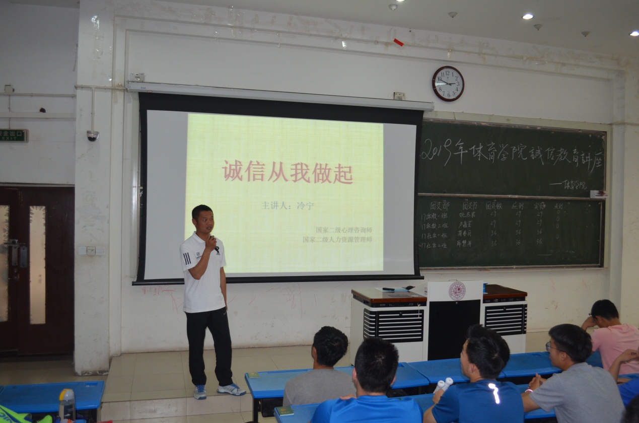 诚信是中华传统美德,也是社会主义核心价值观的重要内容。为加强学生诚信教育意识,5月16日下午beat365平台官方网站在五阶一举办2019年诚信教育专题讲座。冷宁(国家二级心理咨询师、国家二级人力资源管理师)老师担任本次讲座的讲师,冷宁老师主要从诚信的一般理论、诚信的主要特点、诚信的价值功能、诚信的基本要求、中国古代诚信思想五个方面进行讲解,并带领大家一同观看诚信教育宣传片。