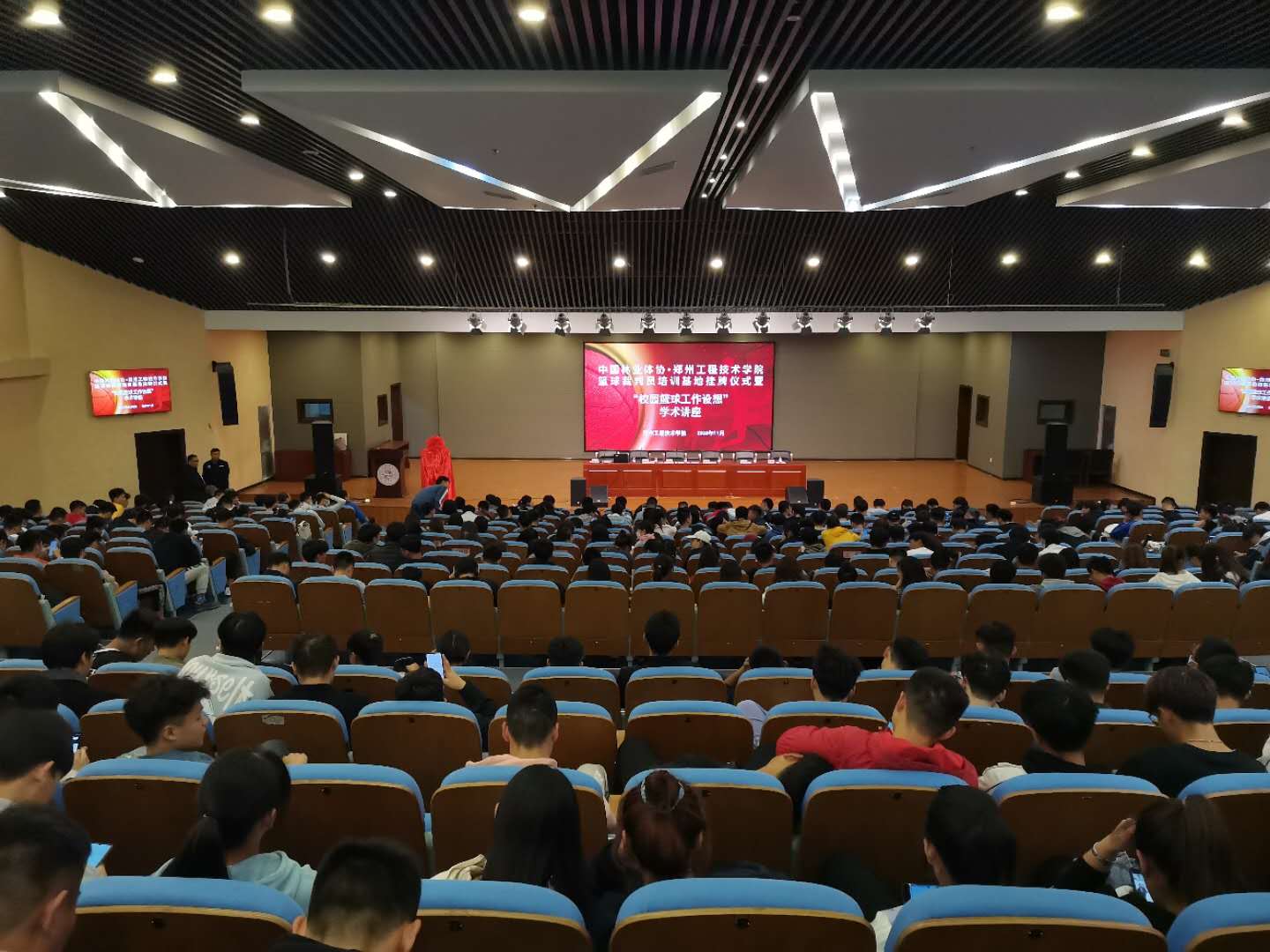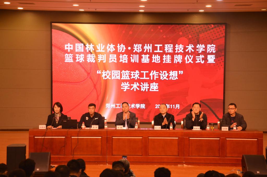 11月11日下午15时,中国林业体协篮球裁判员培训基地揭牌仪式暨“校园篮球工作设想”学术讲座在beat365金河报告厅隆重举行。