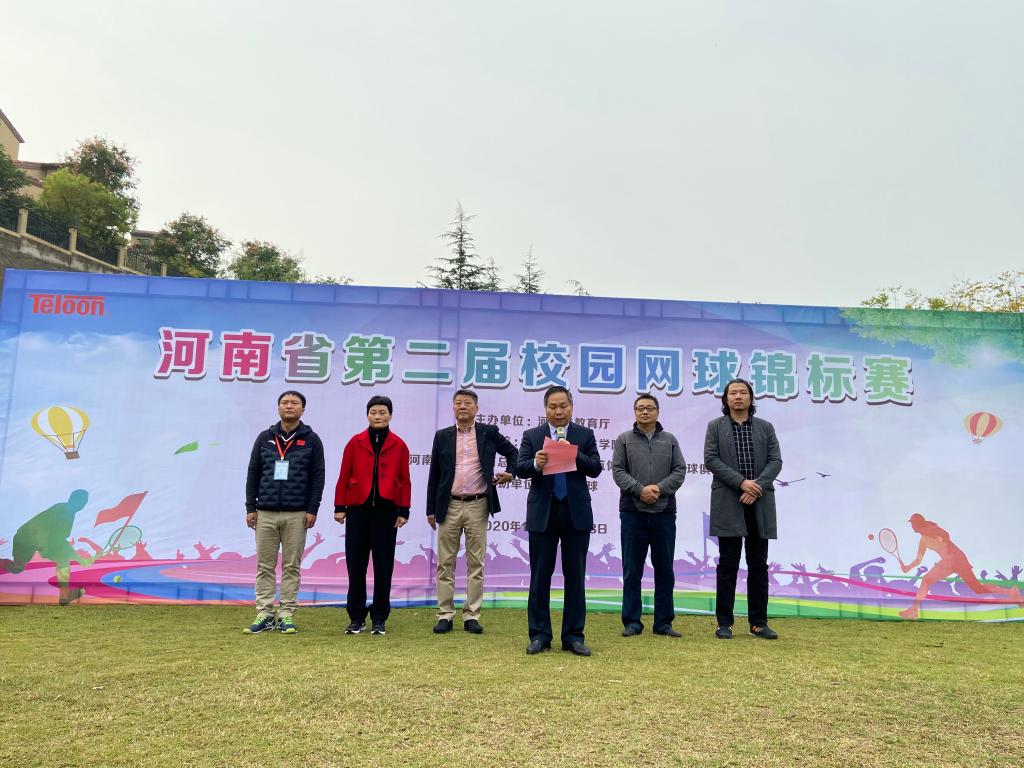 河南省教育厅体卫艺处二级调研员高翔、beat365副校长甘勇、河南省学生体育总会网球协会秘书长李静、beat365beat365平台官方网站院长冯明新、本次比赛裁判长李庆功、河南世航体育文化传播有限公司董事长黄世航等领导出席开幕式,甘勇副校长致开幕词。