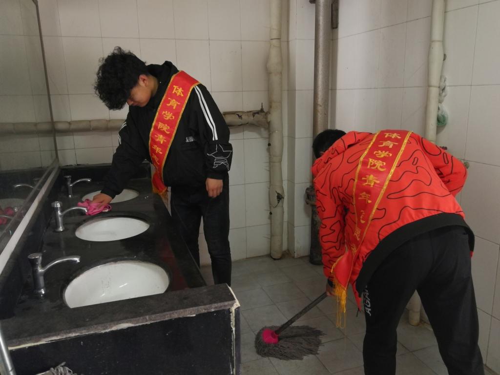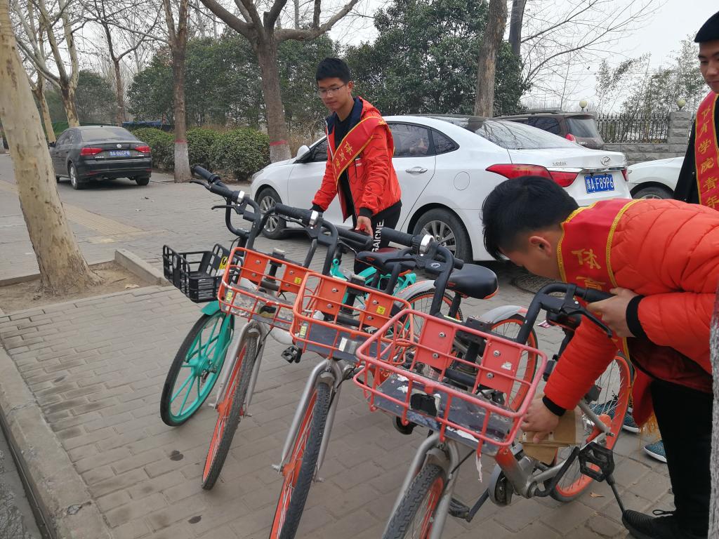 下午14:00点,同学们在5号楼前集合,分组后便积极开始行动,大家相互合作,合理分工,不怕脏不怕累,把倒在地上,乱摆乱放的自行车摆放整齐,把教学楼卫生死角打清理干净,并在各洗手间、打水处也都贴上了提醒同学讲究文明,节约用水的标语,为打造干净卫生的校园环境默默地奉献自己的力量。