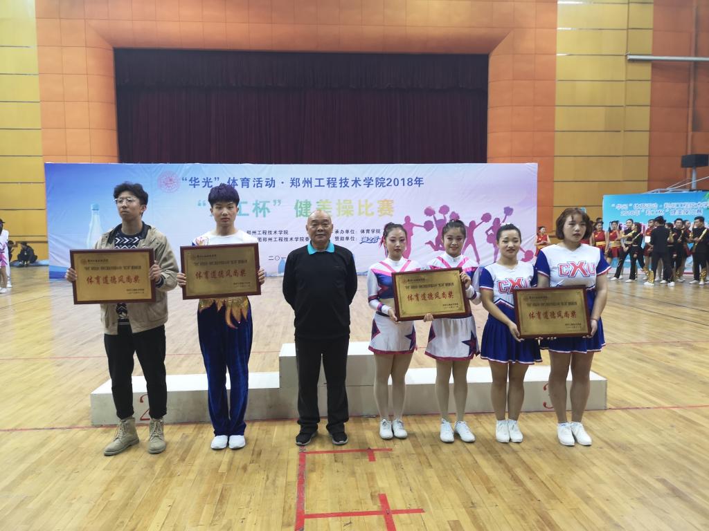 特殊教育学院、土木工程学院、艺术设计学院获得健美操规定动作三等奖,艺术设计学院、文化与传播学院获得啦啦操自编动作一等奖;国际教育学院、机电与车辆工程学院、管理学院获得啦啦操自编动作二等奖;经济贸易学院、外国语学院、音乐舞蹈学院获得啦啦操自编动作三等奖;化工食品学院、经济贸易学院、信息工程学院、特殊教育学院获得体育道德风尚奖;beat365平台官方网站、校团委获得优秀组织奖。
