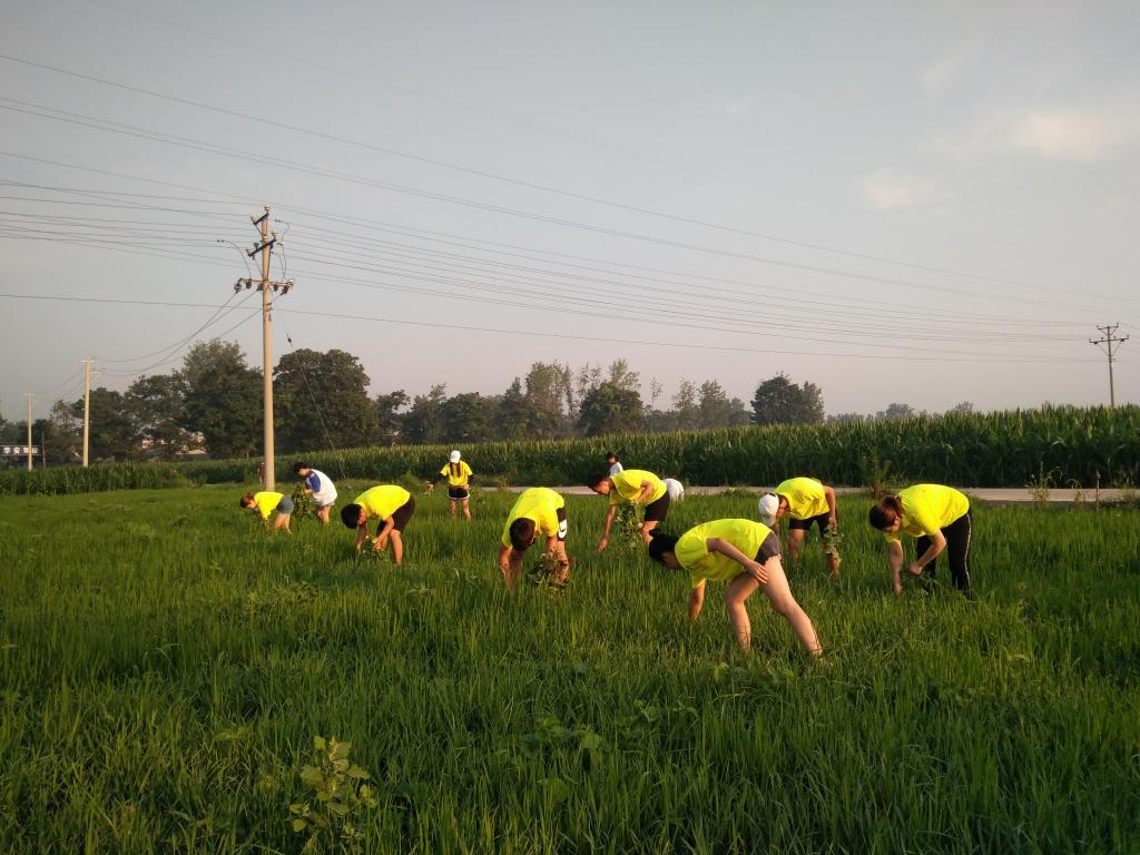 早上6时,志愿者们来到禹州市顺店镇旱稻种植实验田基地,向当地农户详细了解试验田的基本情况,得知目前主要农活是田间除草之后,志愿者们主动分组,在当地农户向志愿者们讲解除草流程和相关注意事项后,志愿者们来到需要除草的田地,用手拔除杂草,并捡起无益水稻生长的纸团等垃圾。田间杂草全部拔完后,志愿者们收集整理拔出的杂草,为水稻的生长创造了干净良好的环境。