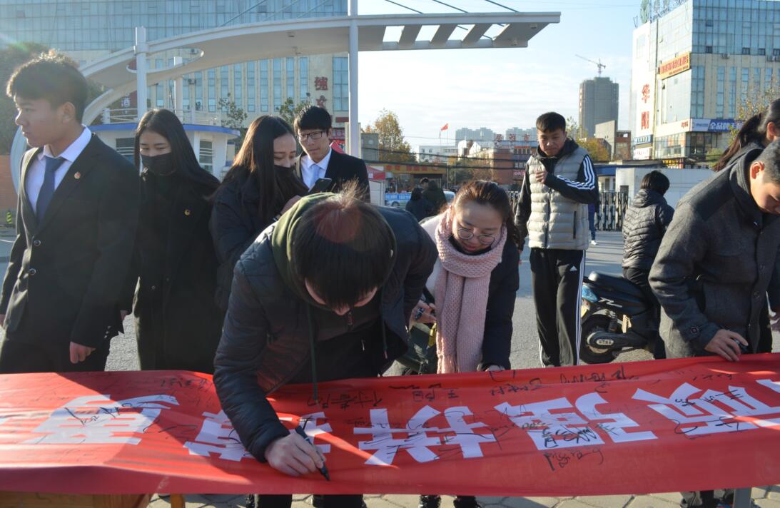 活动现场,数百名同学主动响应参与,在横幅上郑重签下自己的名字,表达了自己的爱国情怀。