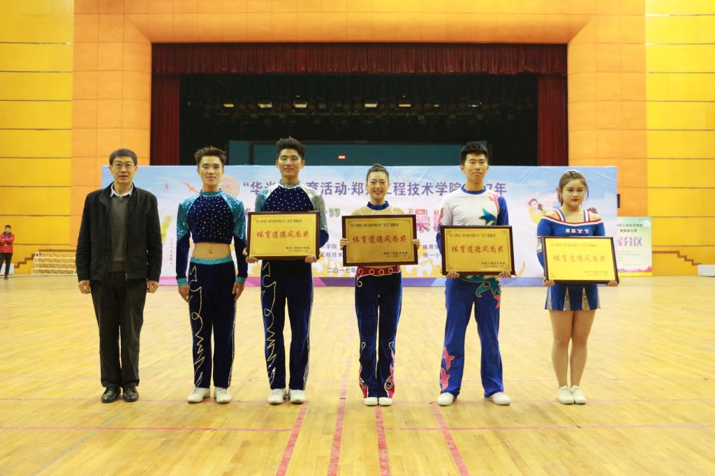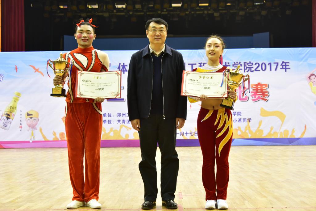 比赛入场式新颖,气氛热烈;比赛过程中精彩不断、高潮迭起;各学院拉拉队欢呼声、加油声不绝于耳,此起彼伏。经过激烈的角逐,国际教育学院、文化与传播学院代表队荣获健美操自编动作的一等奖;特殊教育学院、艺术设计学院、外国语学院代表队荣获二等奖;经济贸易学院、机电与车辆工程学院、土木工程学院代表队荣获三等奖。文化与传播学院、国际教育学院代表队荣获啦啦操规定动作一等奖;艺术设计学院、外国语学院、音乐舞蹈学院代表队荣获二等奖;土木工程学院、经济贸易学院、信息工程学院代表队荣获三等奖;管理学院、化工食品学院、经济贸易学院、特殊教育学院获得体育道德风尚奖。beat365平台官方网站获得优秀组织奖。李阳等33人获得“优秀教练员”荣誉称号;张红亮等24人获得“健美操之星”荣誉称号;魏宁等24人获得“啦啦操之星”荣誉称号;崔军彦等16人获得“优秀指导教师”荣誉称号。随后,校领导为各个获奖代表队颁奖。