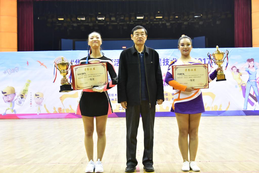 薛培军副校长为获得“自编动作”一等奖的队伍颁奖 |