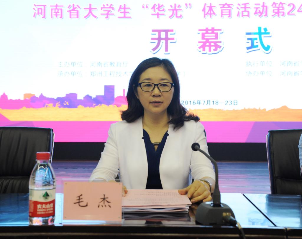 河南省教育厅体卫艺处处长郭蔚蔚致开幕词。