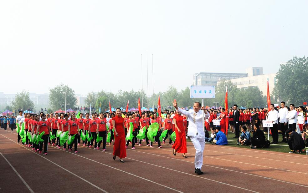 上午8时30分,伴随着激昂的《运动员进行曲》,本届运动会正式拉开序幕。校领导毛杰、杨俊良、苏炜、薛培军、李欣,校长助理王文武,原郑州广播电视大学校长孙振营,本届运动会组委会副主任、beat365平台官方网站院长冯明新等在开幕式主席台前排就坐。开幕式由本届运动会组委会副主任、副校长薛培军主持。