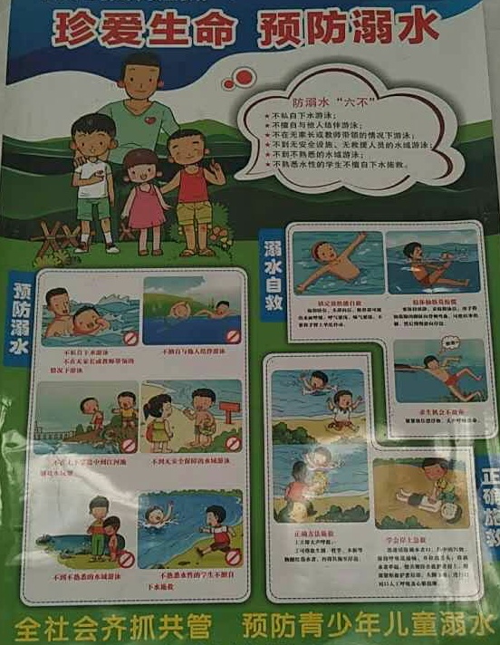 此外,志愿者还结合学校实际情况,开展防溺水系列教育,在校园内张贴宣传标语,悬挂横幅警示语,在宣传栏张贴了防溺水的相关知识等。