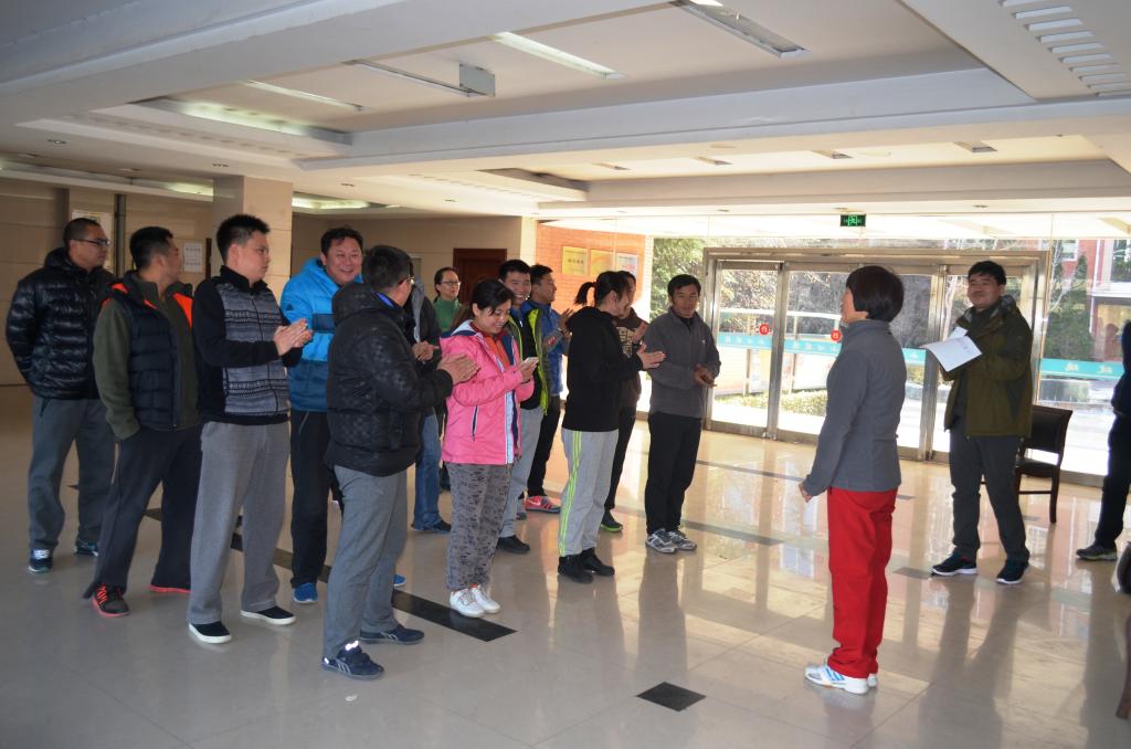 健身气功八段锦讲究“缓慢柔和连贯到位、虚实相生刚柔相济、意动行随神形兼备”充分体现出健身气功锻炼的“吐故纳新”特点。随着优美动听的音乐响起,24名参赛队员,共分四组,依次展现出教师“教练”的特点和风采,赢得同仁们的阵阵掌声。经过激烈角逐,现场打分:袁书立、柳艳两位老师获得本次比赛的一等奖,张枝梅、李德玉、孔煜、胡素霞四位教师获得本次比赛的二等奖。