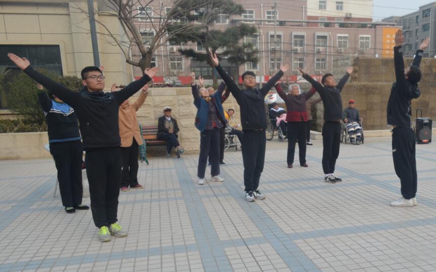 3月10日,2016级体育康复班团支部26名成员怀着激动地心情前往河南省老年公寓。为老年人带来了欢声笑语,为老人们精心准备了武术、健美操、体操、健身操以及升旗。同学们们将自己在学校学习的健身操手把手的交给老人,老人也对健身操非常感兴趣。老人们也表示健身操不仅能活动身体,更能愉悦心情。看着老人开开心心跳着健身操,大家也是由衷的高兴。