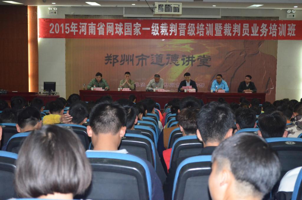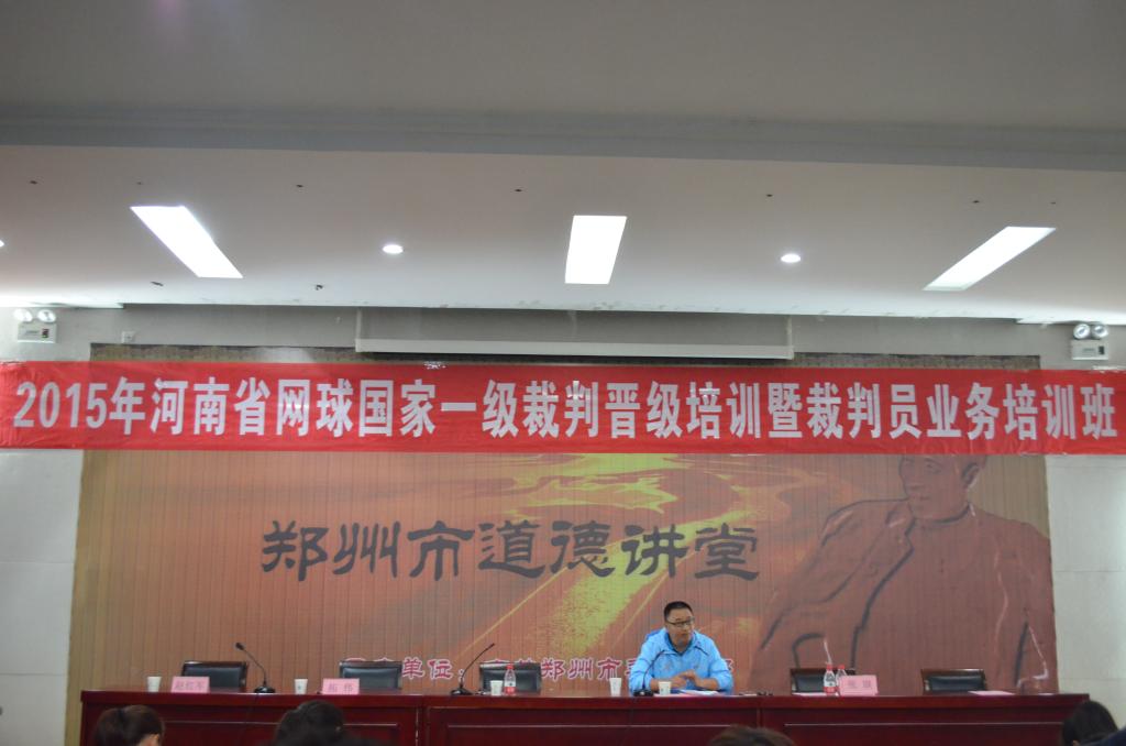 日 ,由河南省体育局乒乓球网球运动管理中心主办、河南省网球协会协办、中州大学beat365平台官方网站承办的河南省网球国家一级裁判晋级培训暨裁判员业务培训班在beat365成功举行,副校长薛培军出席开班仪式并致辞。