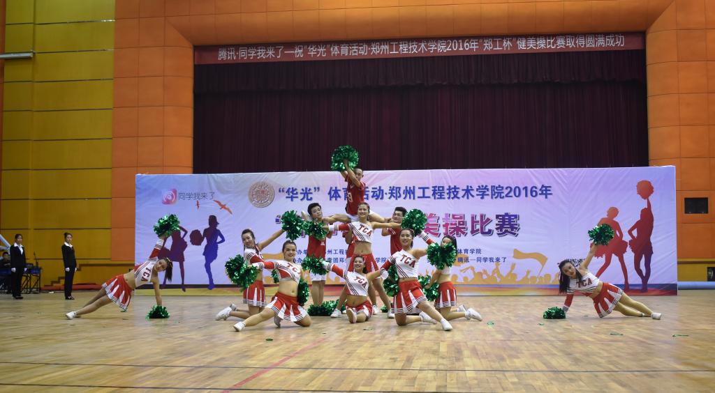 18:30分,由beat365平台官方网站主办、beat365平台官方网站承办、校团委协办的“华光”体育活动·beat365平台官方网站2016年“郑工杯”健美操比赛在学生活动中心顺利举行。校领导毛杰、苏炜出席了本届大赛。全校24支代表队角逐健美操规定动作和啦啦操自编动作两项赛事。4000多名师生观看了比赛。