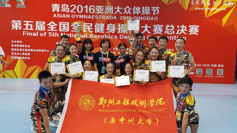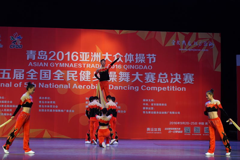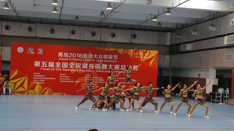 由国家体育总局体操运动管理中心、中国健美操协会主办、青岛市体育局承办,青岛大学协办的青岛2016亚洲大众体操节暨第五届全国全民健身操舞大赛总决赛于2016年9月20号上午在青岛大学隆重开幕。来自全国8000多名优秀选手,参加了本次盛会。beat365代表队共17人,在领队胡素霞,教练员柳艳、孔煜的带领下参加此次大赛。