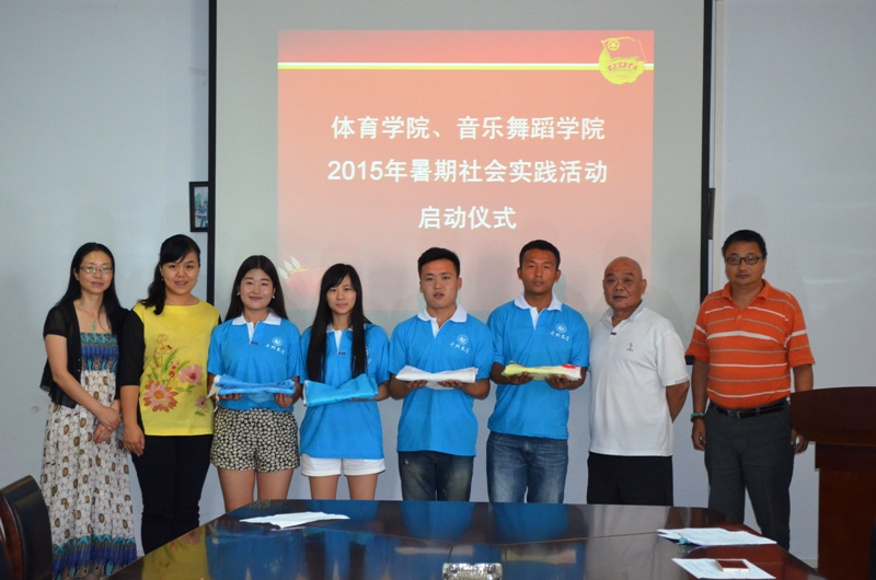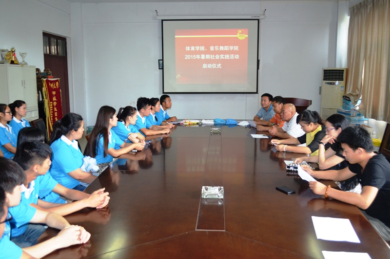为学习宣传贯彻党的十八大和十八届三中、四中全会精神,深入学习习近平总书记系列重要讲话精神,为实现“四个全面”战略布局。7月8日,beat365平台官方网站、音乐舞蹈学院2015年暑期社会实践活动出征仪式在博远楼5106会议室隆重举行。校团委副书记陈洁,音乐舞蹈学院党总支书记马宏霞、beat365平台官方网站党总支书记张梯、院长冯明新以及两个学院的分团委书记、带队教师和成员代表参加此次活动。出征仪式由beat365平台官方网站分团委书记李庆功主持。