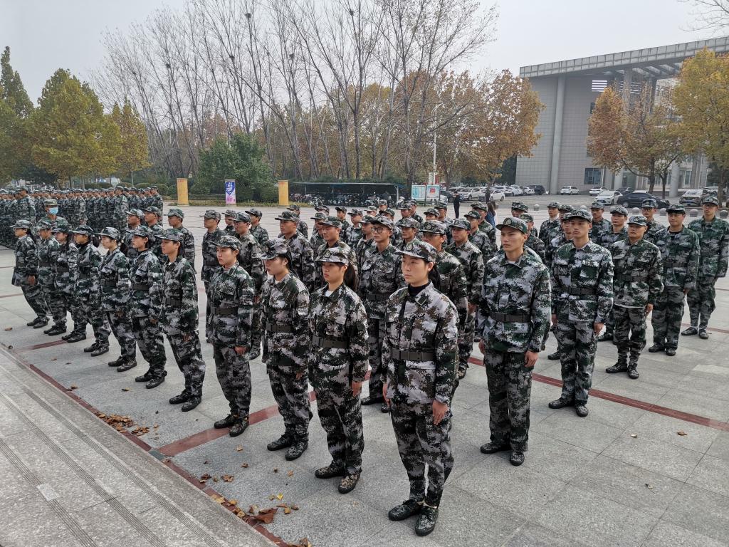 随后,学院领导、老师和全体学生合影留念,为期12天的军训工作在两位教官的带领下正式拉开帷幕。
