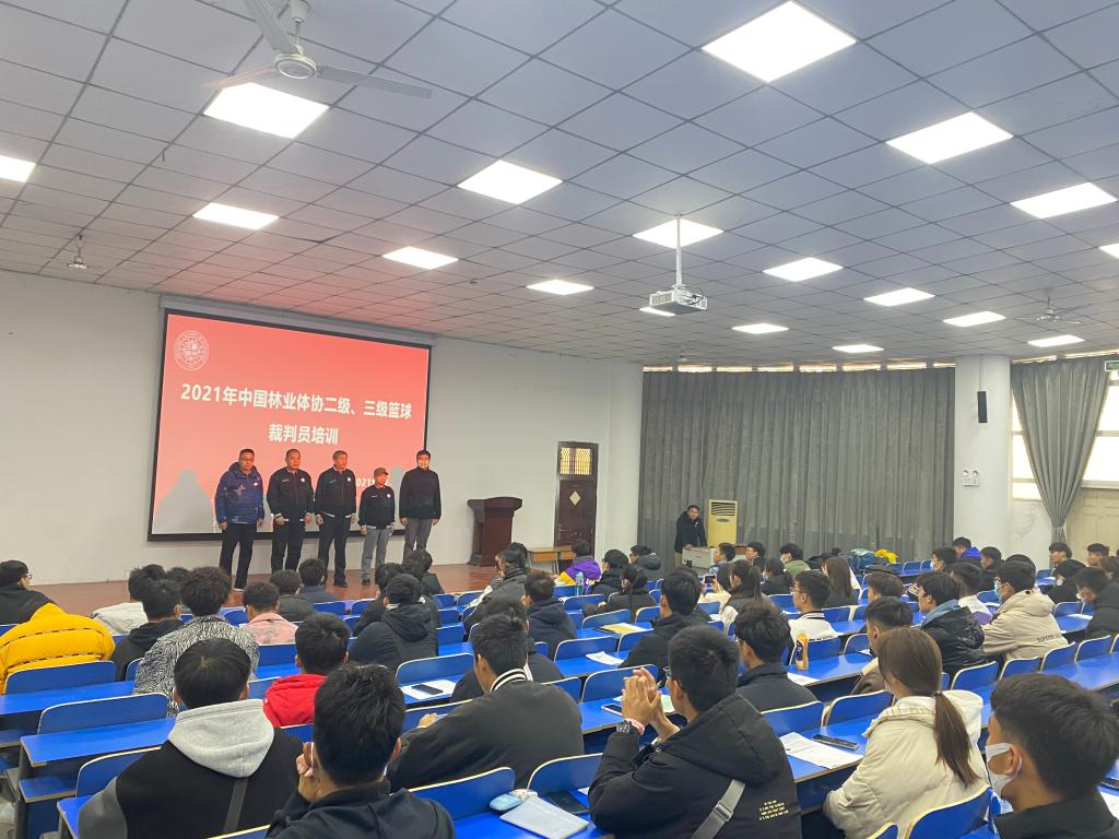 为进一步提升beat365学生篮球专业素养和临场执裁水平,提高学生的专业能力。12月5日,由中国林业体协篮球裁判委员会主办,beat365beat365平台官方网站承办的中国林业体协2021年篮球二、三级裁判员培训班开班仪式在龙子湖校区举行。beat365平台官方网站院长冯明新,中国林业体协篮球裁委会讲师团成员:杨型国、张钦、刘鸣、康军标等老师和同学们参加开班仪式。开班仪式由beat365平台官方网站学工办主任李庆功主持。
