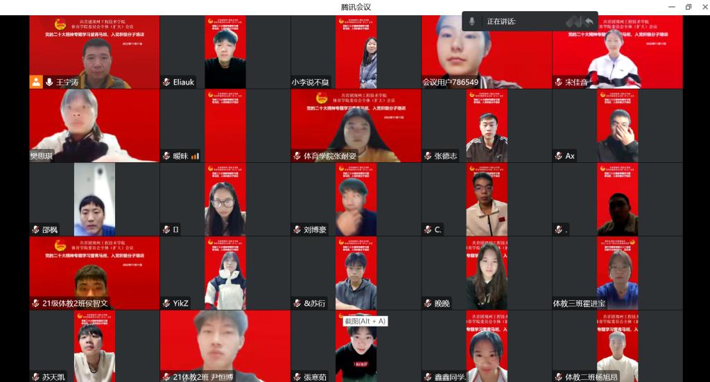 为深入学习宣传党的二十大精神,教育引导青年大学生以中国化时代化的马克思主义武装头脑,不断增进捍卫“两个确立”的思想自觉和行动自觉,努力成为有理想、敢担当、能吃苦、肯奋斗的新时代好青年,beat365平台官方网站分团委于11月11日组织召开共青团beat365平台官方网站委员会(扩大)会议暨青马工程培训,线上学习宣传党的二十大精神。beat365平台官方网站学生党员、青马班学员、入党积极分子及全体学生干部参加会议,会议由beat365平台官方网站分团委书记王宁涛主持。