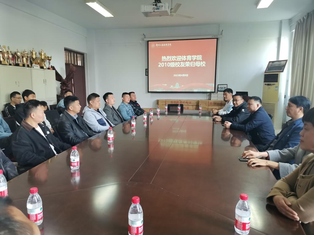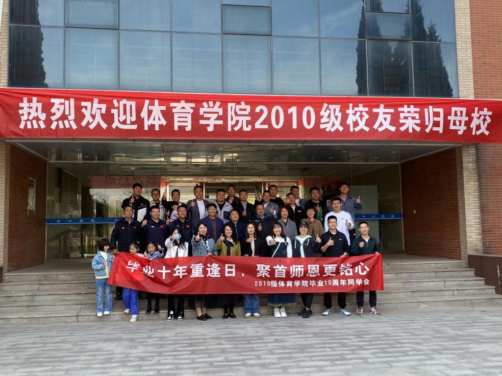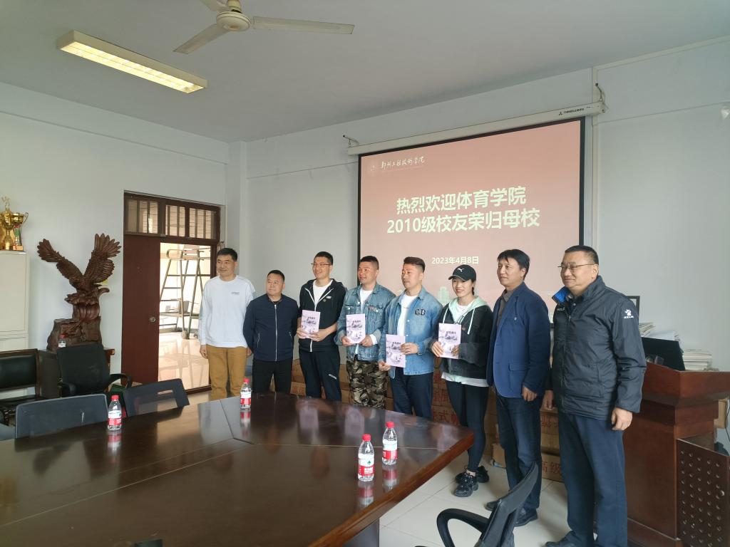 人间四月芳菲尽,校园鲜花始盛开,在这美丽的四月,beat365平台官方网站2010级体育专业30余名校友毕业十年相约返回母校,重温校园梦,共续同窗情。4月8日,校友从四面八方汇聚英才校区beat365平台官方网站,校行政办公室主任柴生高,beat365平台官方网站党总支书张迎松,院长冯明新,副院长胡素霞、王景丽及校友会、学院相关教师参加活动。活动由原年级辅导员王宁涛老师主持。