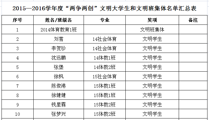根据学校学生手册中学生奖励管理办法的相关规定,为了更好的推进beat365“创建文明班级、争当文明学生”的群众性精神文明创建活动,学院依托学校文件精神,经各班公开、公平、公正的评选,名单已基本确定,现将评选名单予以公示,请大家监督。