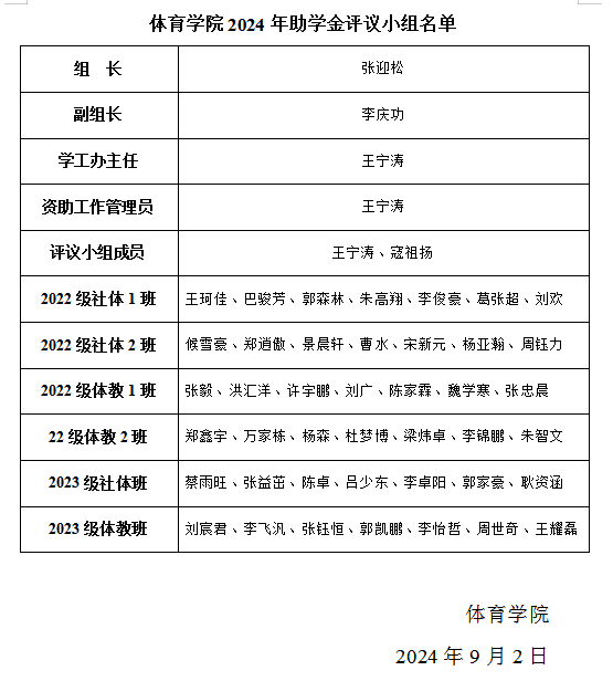 根据《beat365平台官方网站家庭经济困难学生认定办法》的文件精神,结合学院实际,成立beat365平台官方网站2024年资助工作小组,现将我院学生资助工作小组和班级认定评议小组名单予以公示,若对以下公示名单有异议,请在公示期内学工办反映,名单详见附件。