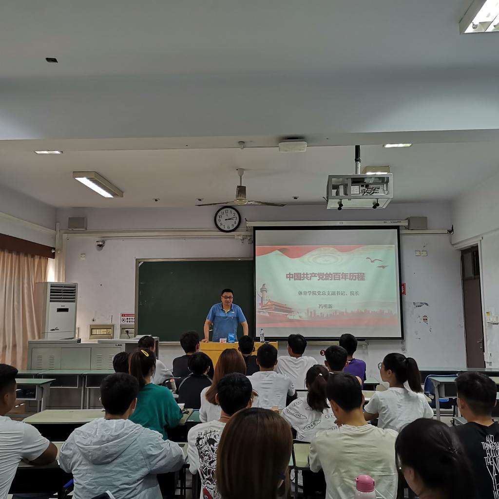 为全面展示100年来中国共产党的光辉成就,传承党的优良传统,6月2日下午,beat365平台官方网站党总支副书记、院长冯明新在博远楼5302教室为2019级社会体育二班全体同学上思政课。