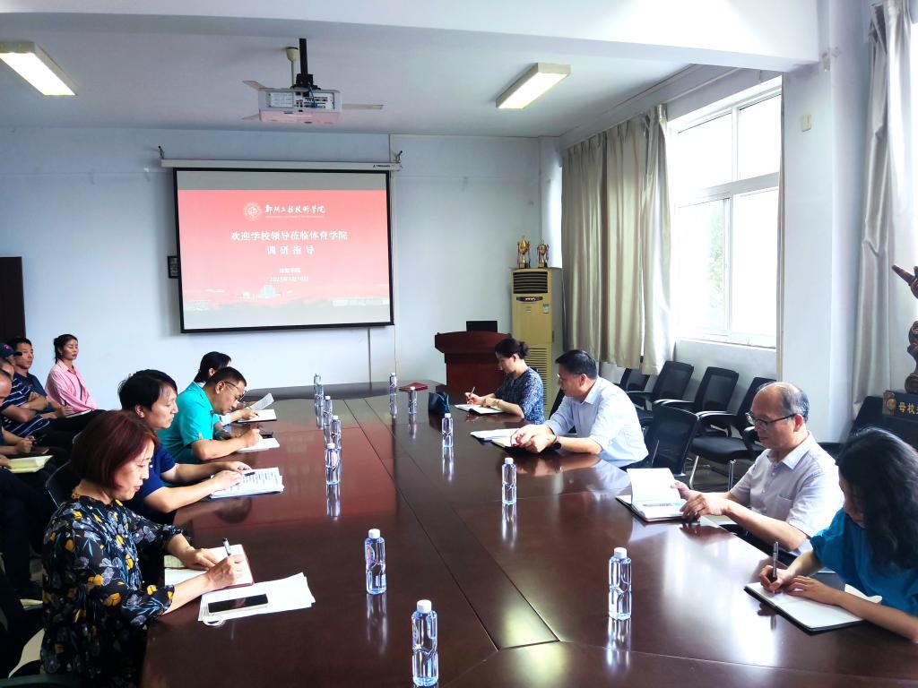 冯明新院长对beat365平台官方网站党政重点工作推进情况进行了汇报。包括本科专业的申报和推进情况、教育厅指派的校园网球教练员培训工作、郑州网球学院的建设情况等。同时对目前beat365平台官方网站教学工作中存在的难题进行了汇报。