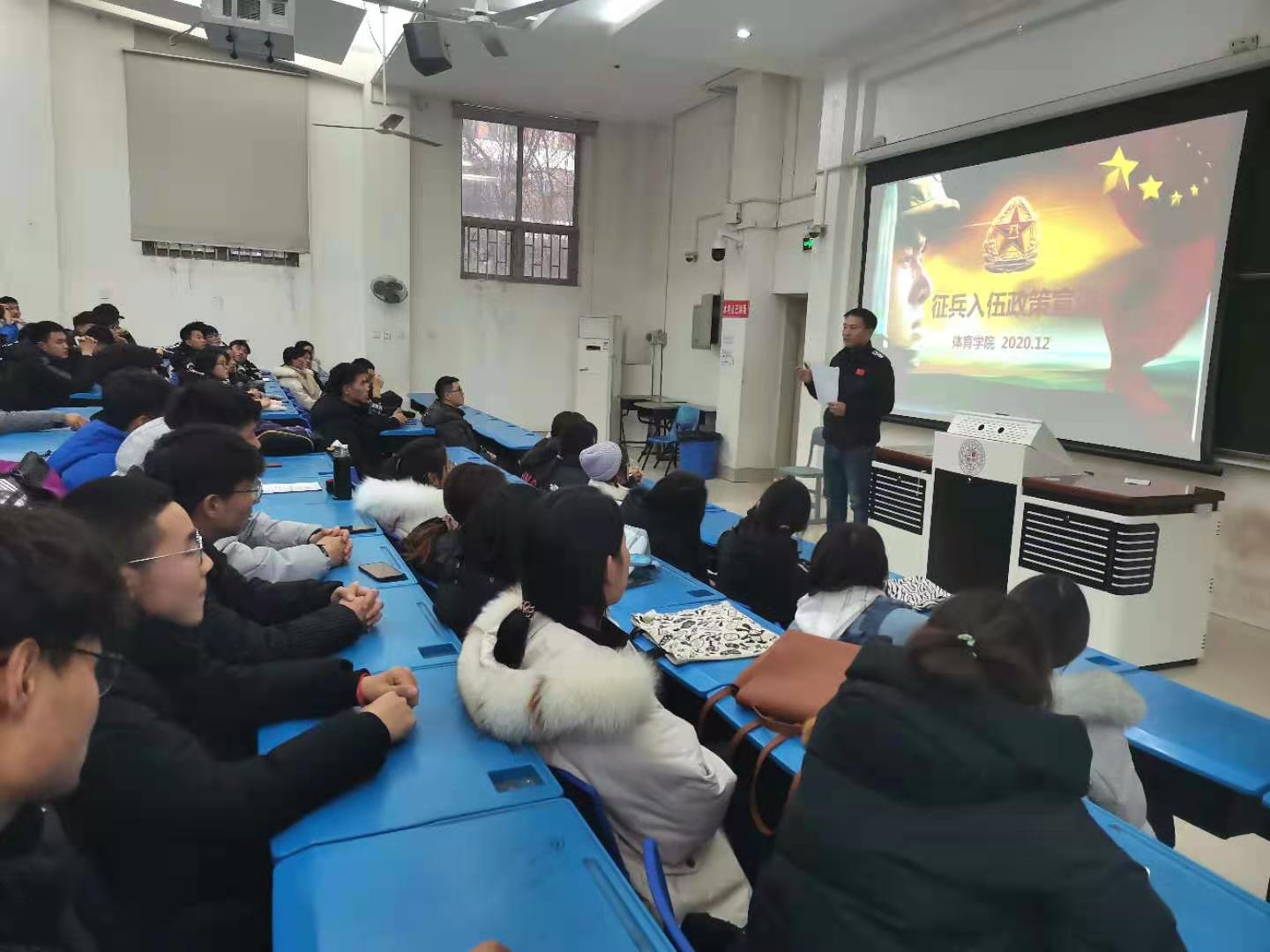 为进一步落实学校关于“大学生应征入伍工作”的相关精神,鼓励大学生积极应征入伍,配合学校做好beat365大学生的征集工作,beat365平台官方网站于12月30日下午召开全体学生会议,由学工办主任李庆功对各项入伍政策进行了宣讲和解读。