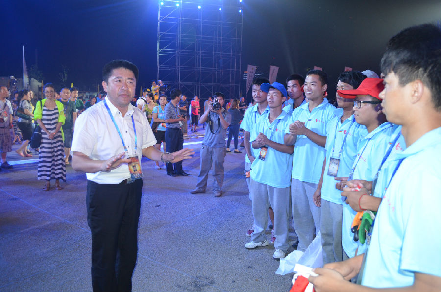 10日晚上的决赛现场,大力士们的竞争更是激烈。伴随着现场观众的呐喊助威声,扁担走、轮胎硬拉、抱石球,一个个超高难度的比赛项目轮番上演。选手们个个使尽浑身解数,激烈比拼,互不相让。最终,立陶宛选手赛维克斯力压群雄,获得“2013世界大力士中国争霸赛”冠军。至此,“2013世界大力士中国争霸赛”完美收官。颁奖仪式结束后,郑州市委常委、宣传部部长王哲,郑州市副市长刘东,郑州市委宣传部副部长、郑州电视台台长李平及本次比赛的央视导演王伟以及节目制片人等各位领导相继走入beat365志愿者队伍中,亲切地慰问大家并和志愿者们合影留念。当王哲部长得知志愿者都是中州大学的学生时,他伸出大拇指说,中州大学的同学们,你们是好样的!你们这些天工作辛苦了,感谢大家。刘东副市长说:同学们辛苦了,中州大学的志愿者工作已经成为本次大赛的一个亮点,希望你们再接再厉,把志愿者工作做成你们学校的一张名片。李平台长更是在充分肯定了同学们的志愿服务工作后,面对志愿者们深深的鞠了一躬,以表示对同学们辛勤付出的真诚谢意。出色完成大赛志愿服务的同学们按耐不住内心的激动把央视导演王伟高高抛起,以庆贺比赛的顺利结束和节目录制的圆满完成。