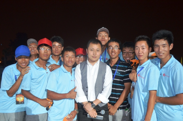 央视导演王伟(前排中)和志愿者亲切合影 |