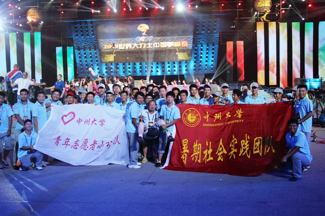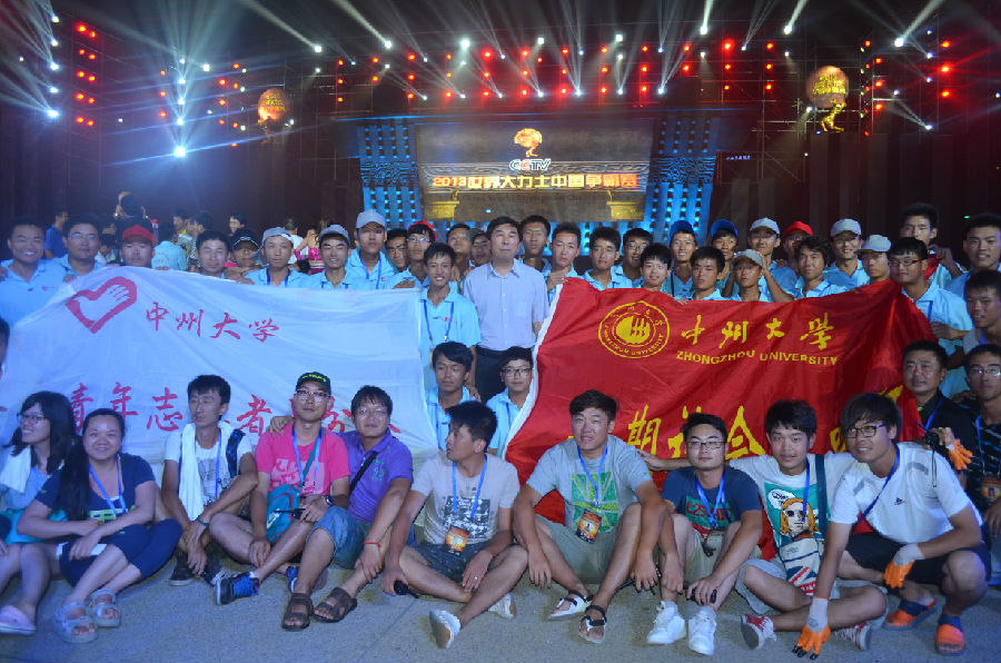 汇聚世界力量,放飞中原梦想。由中央电视台综合频道和郑州市委宣传部联合主办的“2013世界大力士中国争霸赛”7月5日在郑州市郑东新区如意湖广场精彩上演。中州大学beat365平台官方网站受郑州市电视台的邀请,组织了40人的志愿者团队,为本次大赛提供为期10天的志愿服务。