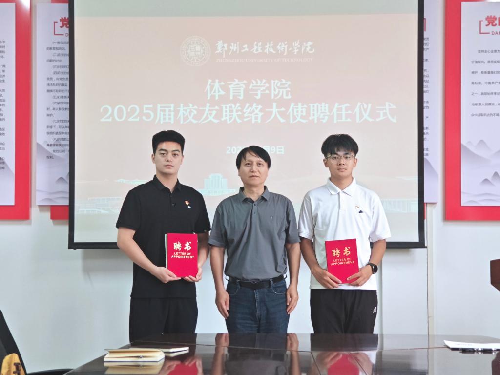 仪式伊始,王宁涛主任宣读了关于聘任2022级体育教育专业梁炜卓、社会体育专业田宇扬为beat365平台官方网站2025届校友联络大使的决定。随后,党总支书记张迎松为两位联络大使颁发聘书。这一纸聘书,不仅是一份荣誉,更是一份沉甸甸的责任。